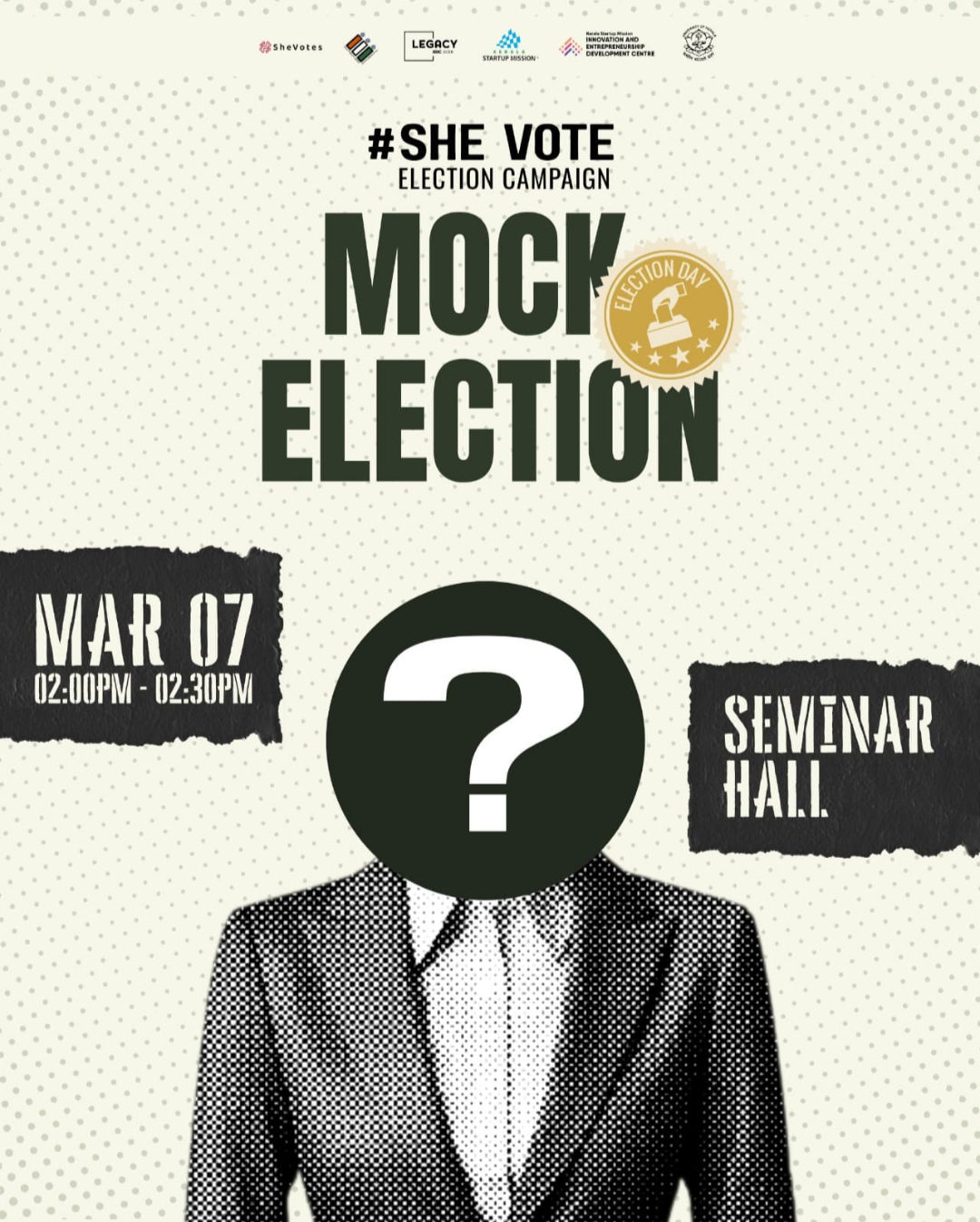 `Mock Election`⚡ *Your Vote, Your Voice! 🗳️* This is your chance to engage in the democratic process and cast your vote in a simulated election. Whether you're a first-time voter or an experienced one, this event is designed to help you understand the importance of voting and how elections work in a fun and interactive way. This is your chance to make your voice heard, so don’t miss out. Remember, your vote counts, even if it’s just in a mock election!