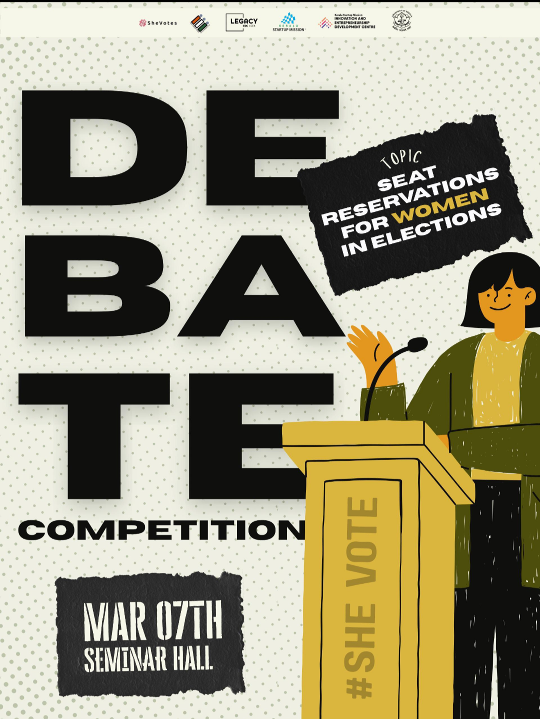 *Seat Reservations for Women in Elections*🗳️ The debate on seat reservations for women in elections sparks discussions on gender equality, representation, and meritocracy. Does reserving seats empower women or create a system of dependency rather than merit-based selection? Join us for an engaging debate where perspectives will clash, ideas will be challenged, and new insights will emerge! Be part of the conversation. Let your voice be heard!🗣️📈