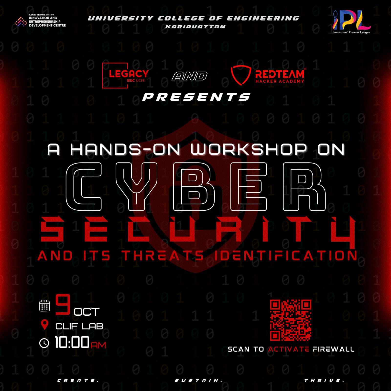 Legacy IEDC UCEK, in collaboration with RedTeam Hacker Academy, is organizing a comprehensive session on: Cybersecurity and Threat Identification. Hosted by: Bijoy B & Rajeesh MR, Senior Cybersecurity Researchers