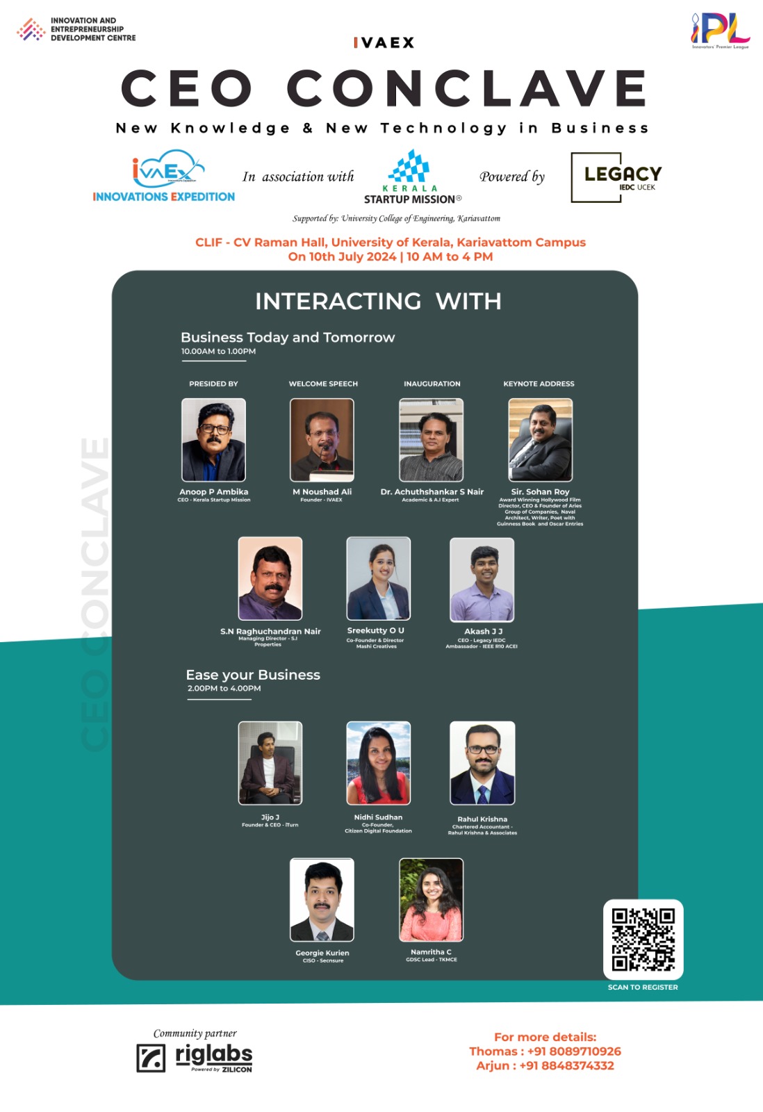 The CEO Conclave, held on July 10, was a collaborative effort by IVAEX, Legacy IEDC UCK, Kerala Startup Mission, and Riglabs Collective. It featured prominent speakers and industry leaders who engaged in insightful panel discussions.