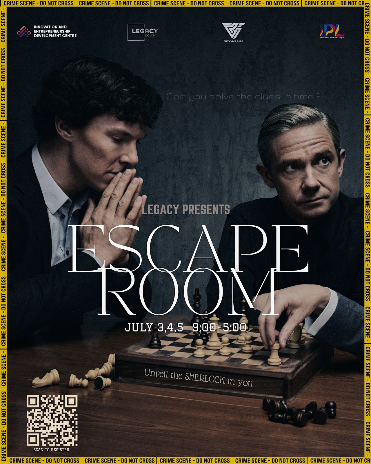 From July 3 to July 5, 2024,LEGACY the Innovation and Entrepreneurship Development Centre (IEDC) organized a captivating "Escape Room" event during the RENVNZA Tech Fest. This event took place in a specially designed hall and included multiple themed rooms, each offering unique challenges inspired by horror motifs and the popular "Squid Game"series.