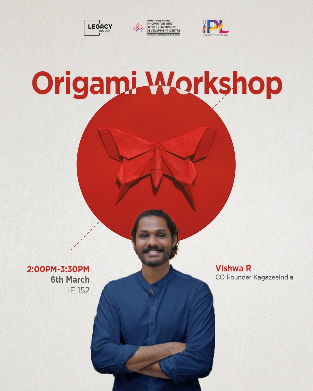 On 6th March, As part of NEXERA fest the Tech-fest of Industrial Engineering Department ,College of Engineering Trivandrum, LEGACY IEDC UCEK organized an Origami workshop featuring Vishwa R, the Co-founder of Kagazee India and Quality and Operation Lead of Legacy IEDC UCEK. The event aimed to blend art and technology by showcasing the potential of Origami in robotics.